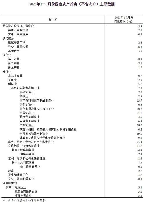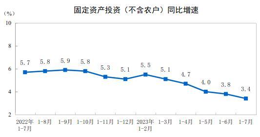 國家統計局:1—7月份全國固定資產投資增長3.4%