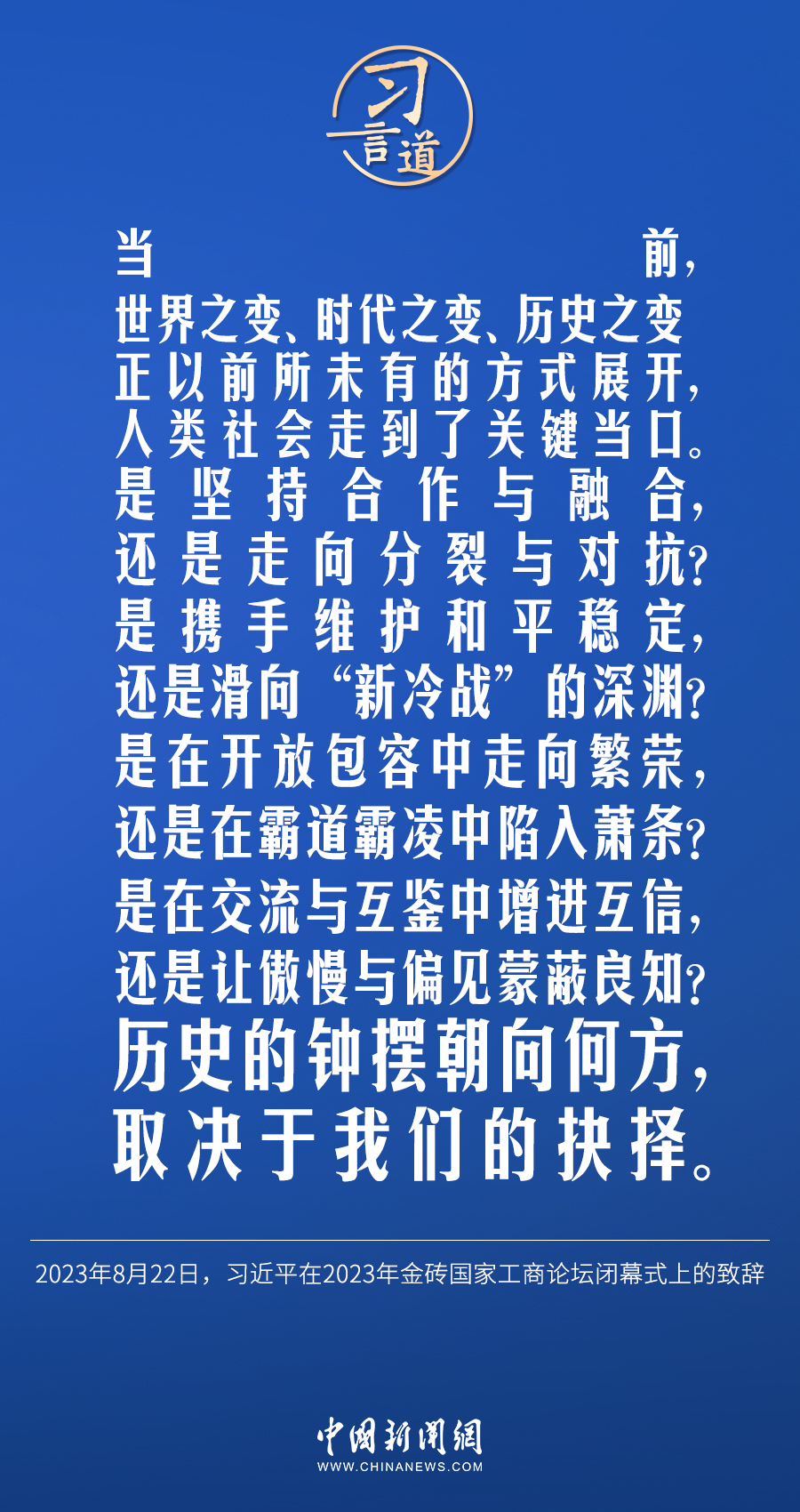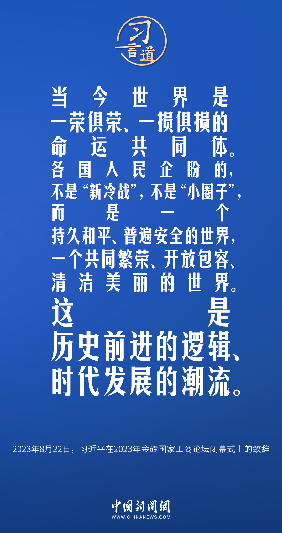 當地時間8月22日下午,中國國家主席習(xi) 近平向約翰內(nei) 斯堡金磚國家工商論壇閉幕式發表題為(wei) 《深化團結合作 應對風險挑戰 共建更加美好的世界》的致辭。習(xi) 近平指出——
