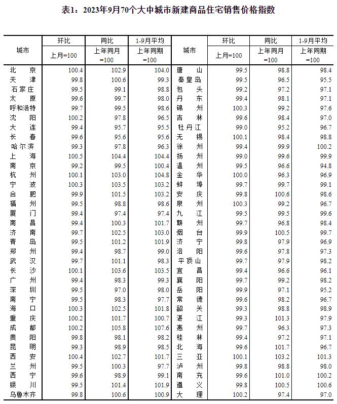 9月一線城市新建商品住宅銷售價格環比持平 同比漲幅擴大