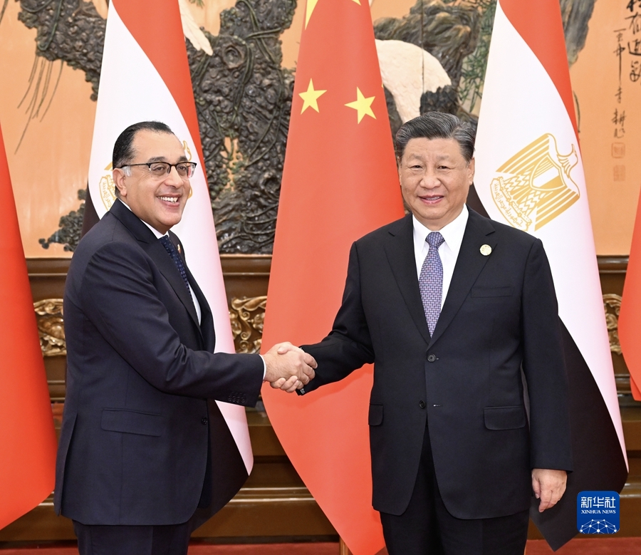10月19日上午,國家主席習(xi) 近平在北京人民大會(hui) 堂會(hui) 見來華出席第三屆“一帶一路”國際合作高峰論壇的埃及總理馬德布利。