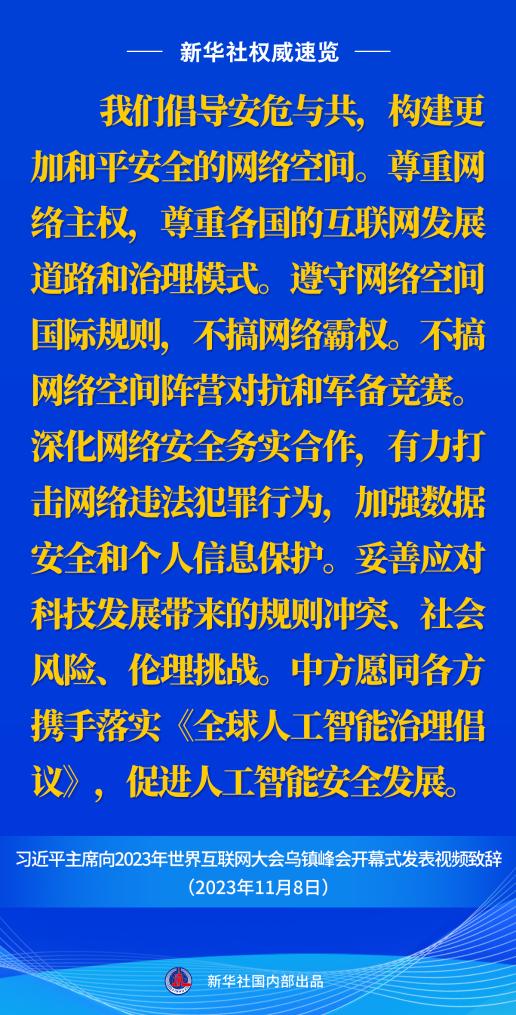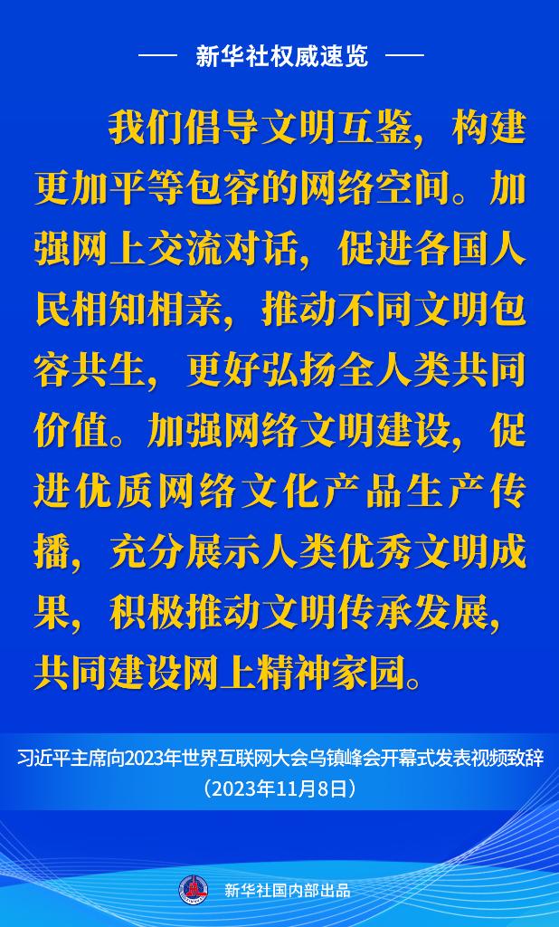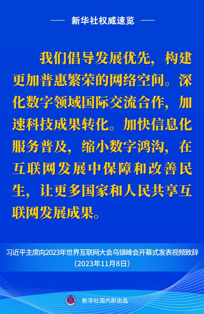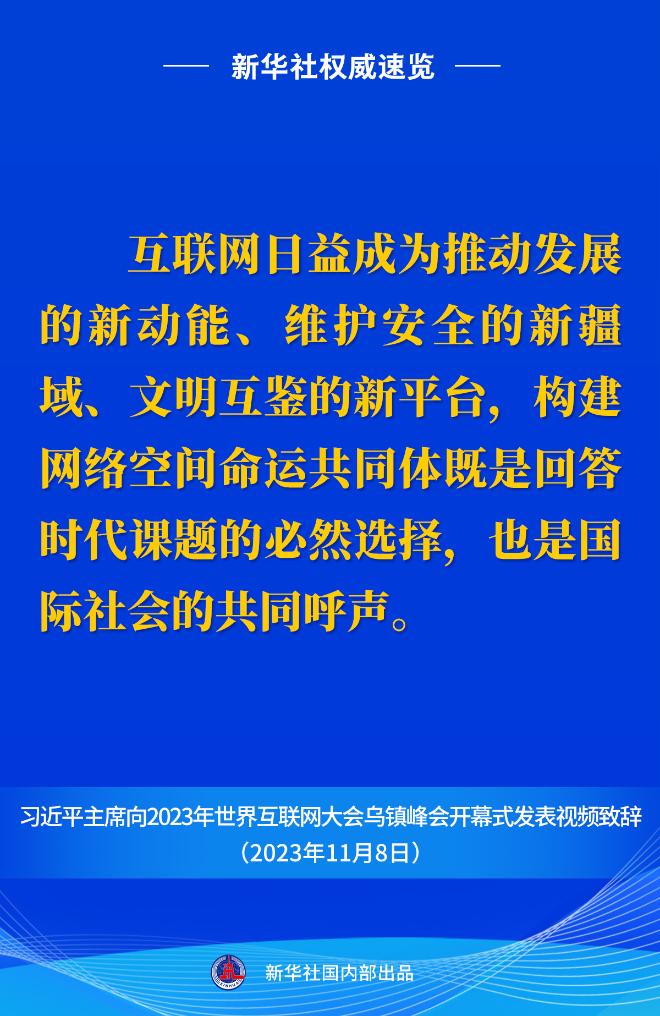 新華社權威速覽丨習近平主席向2023年世界互聯網大會烏鎮峰會開幕式視頻致辭金句