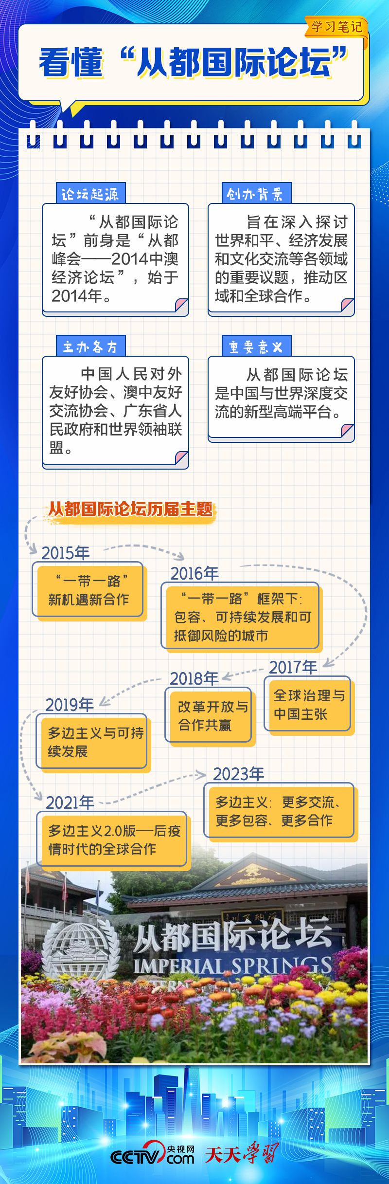 作為(wei) 加深理解、推進共識、合作共贏的國際高端交流平台,從(cong) 都國際論壇自2014年創設以來,已舉(ju) 辦八屆。多年來,從(cong) 都國際論壇不僅(jin) 成為(wei) 了一扇觀察和感知當代中國的窗口,更為(wei) 完善全球治理貢獻了智慧和力量。在踐行真正的多邊主義(yi) 實踐中,中國與(yu) 世界相向而行,共進共贏。