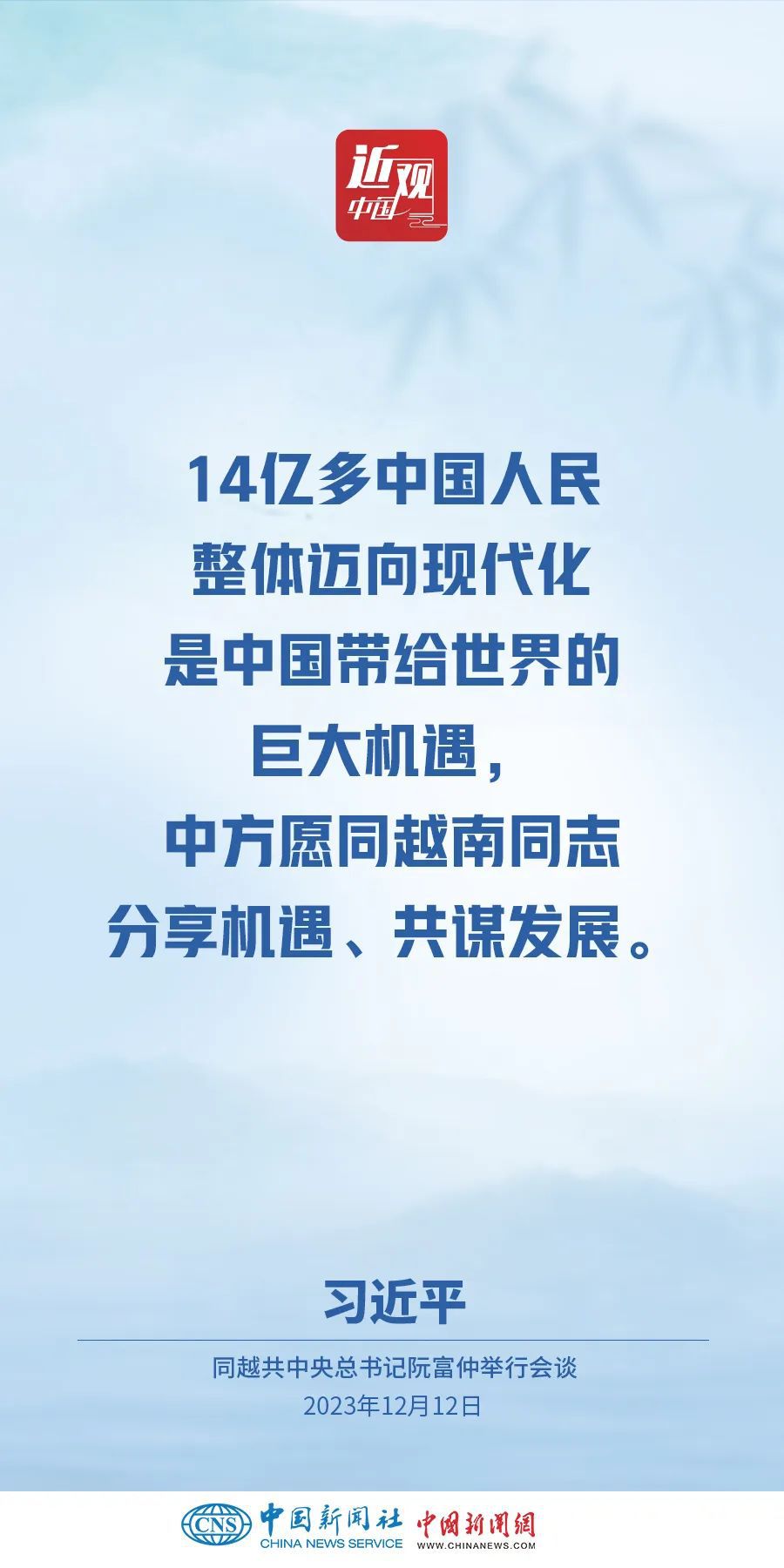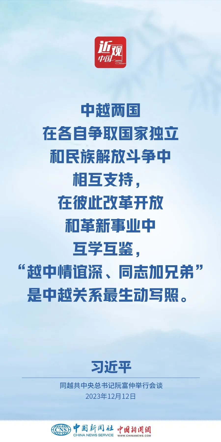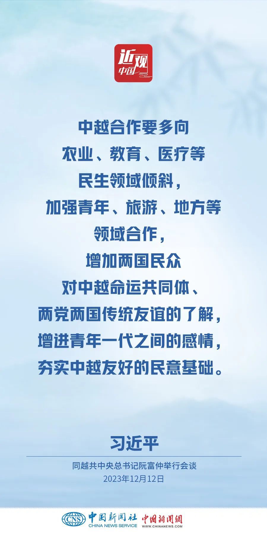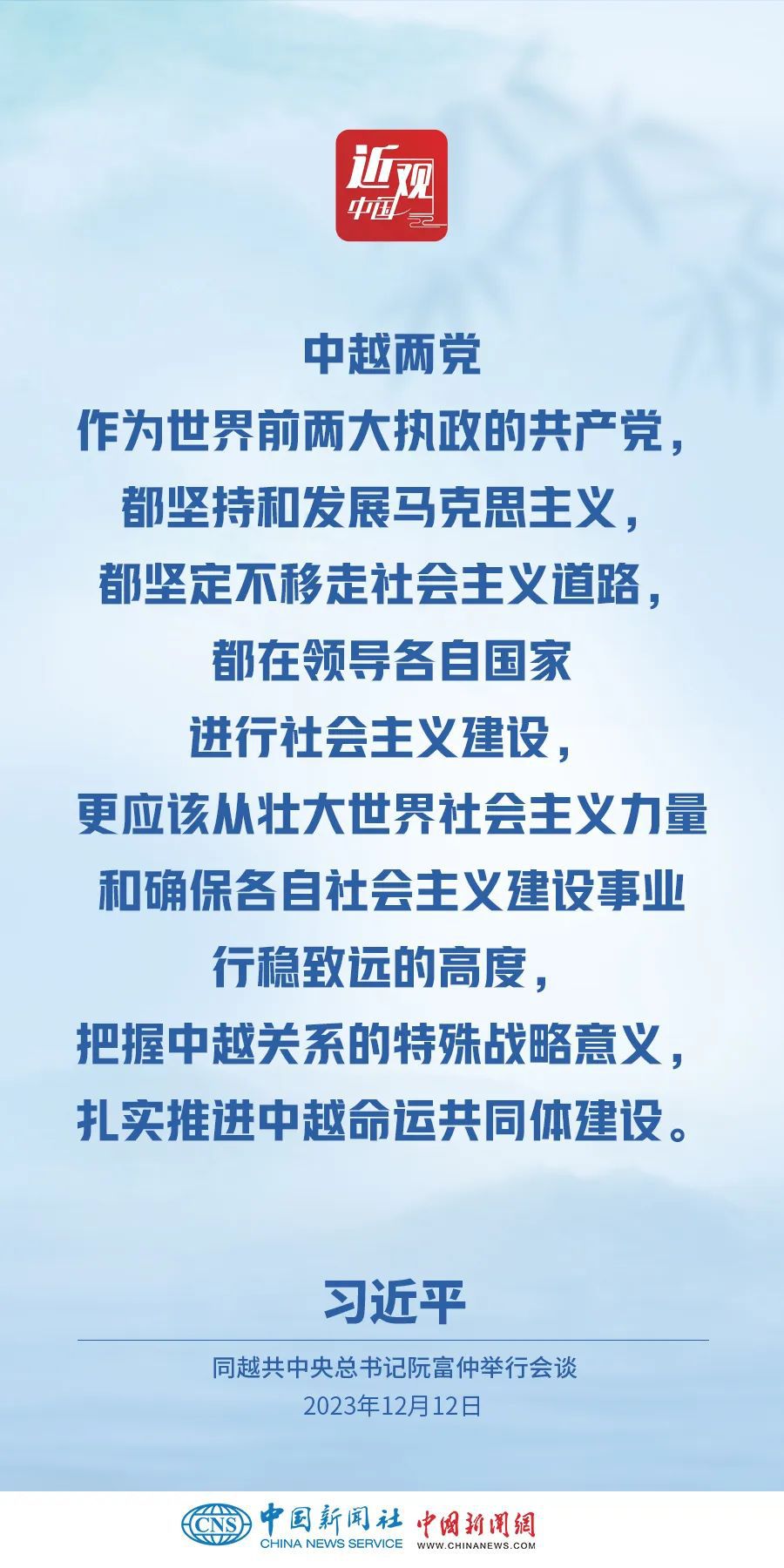 當地時間12月12日下午,剛剛抵達河內(nei) 的中共中央總書(shu) 記、國家主席習(xi) 近平在越共中央駐地同越共中央總書(shu) 記阮富仲舉(ju) 行會(hui) 談。雙方宣布中越兩(liang) 黨(dang) 兩(liang) 國關(guan) 係新定位,在深化中越全麵戰略合作夥(huo) 伴關(guan) 係基礎上,攜手構建具有戰略意義(yi) 的中越命運共同體(ti) 。習(xi) 近平指出——