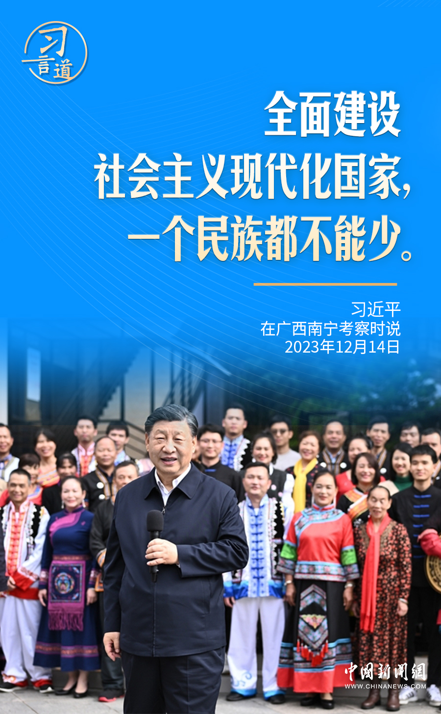 12月14日,在廣西南寧名為(wei) 蟠龍社區的多民族聚居社區裏,習(xi) 近平再次強調了“一個(ge) 民族都不能少”。
