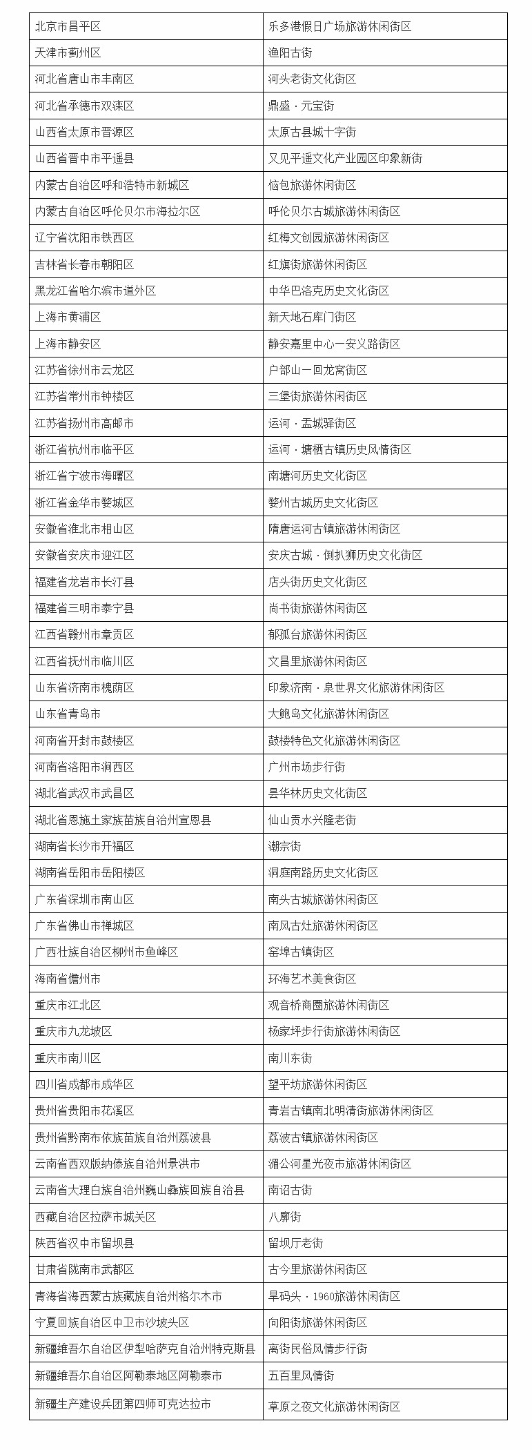 文旅部確定第三批國家級旅遊休閑街區名單