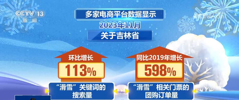 多家電商平台數據顯示,2023年11月,關(guan) 於(yu) 吉林省“滑雪”關(guan) 鍵詞的搜索量環比增長113%,“滑雪”相關(guan) 門票的團購訂單量同比2019年增長了598%。