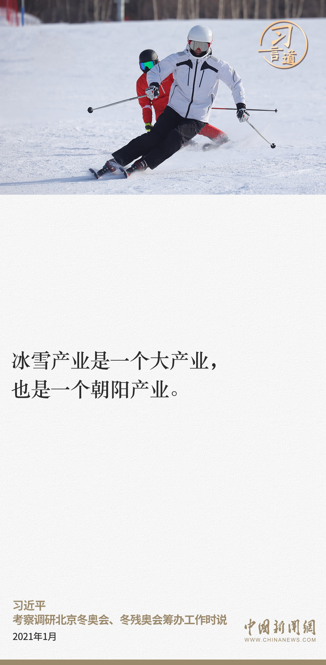 冰天雪地也是金山銀山。習(xi) 近平總書(shu) 記高度重視冰雪事業(ye) 發展,多次作出重要論述和重大部署。