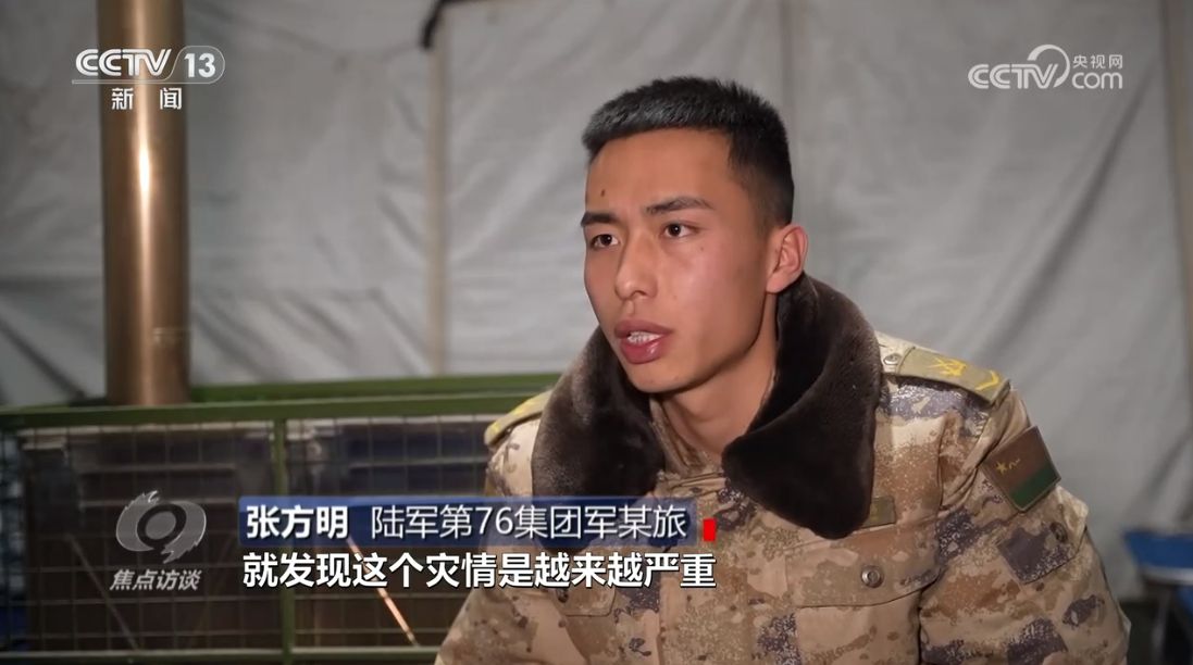 陸軍(jun) 第76集團軍(jun) 某旅章新禹:“據我們(men) 了解,他家五間房屋全部開裂,家人在院子裏麵搭了一個(ge) 帳篷,我們(men) 優(you) 先讓他回去解決(jue) 自己的事情,然後再返回部隊。”