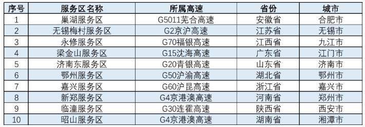 表 春節較繁忙服務區 (全文圖表均來自交通運輸部路網監測與(yu) 應急處置中心官方微博)