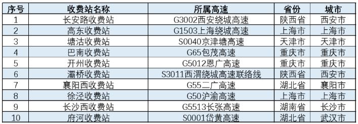 春節期間,全國高速公路預計易發生擁堵緩行的收費站,如下表所示。