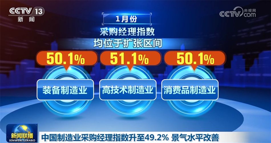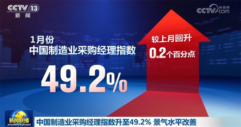 中國物流與(yu) 采購聯合會(hui) 、國家統計局服務業(ye) 調查中心1月31日公布,1月份中國製造業(ye) 采購經理指數為(wei) 49.2%,較上月回升0.2個(ge) 百分點,結束了連續3個(ge) 月下降勢頭,景氣水平有所改善。