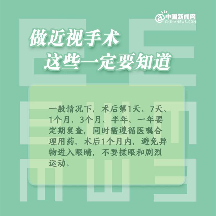 中新網2月4日電 ①近視手術,分為(wei) 角膜激光手術和眼內(nei) 鏡植入手術;②一般來說,近視手術的時間建議在18-50歲之間;③術後1個(ge) 月內(nei) ,避免異物進入眼睛,不要揉眼和劇烈運動;④術後仍應注意用眼衛生、飲食習(xi) 慣、生活習(xi) 慣等,要經常放眼遠眺。