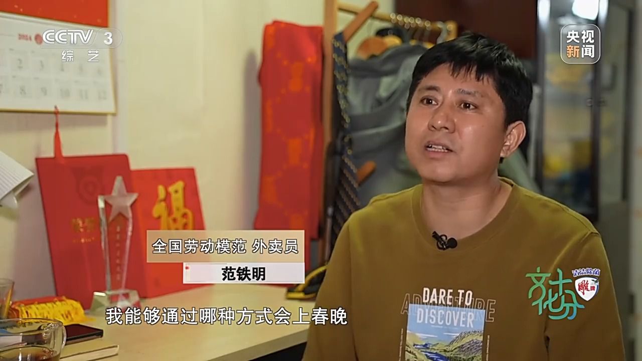 全國勞動模範 外賣員 範鐵明:2023年,我被評為(wei) 全國最美外賣配送員,這個(ge) 獎項,不單純是給我個(ge) 人的,實際上是對新就業(ye) 群體(ti) ,對騎手的一個(ge) 認可。根本就沒有想到我能夠通過哪種方式會(hui) 上春晚,因為(wei) 我又不是專(zhuan) 業(ye) 的演職人員,當時我並不是很相信,我們(men) 分配的是《勞動最光榮》,它是一個(ge) 通過動畫片的形式,就是我們(men) 兒(er) 時都會(hui) 看一些動畫片,動畫片裏都會(hui) 有一些主人公,比如說《黑貓警長》當中的黑貓警長,《大鬧天宮》裏的孫悟空,包括《小貓釣魚》裏頭的貓媽媽,當然都是我們(men) 當時崇拜的一個(ge) 對象,最終我們(men) 成為(wei) 或即將成為(wei) 他們(men) 。