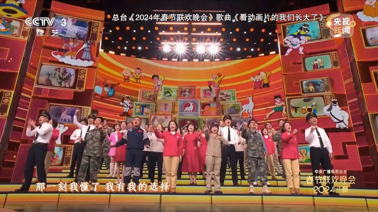 今年的總台春晚有一首與(yu) 動畫片有關(guan) 的歌曲節目,從(cong) 開飛機坦克的舒克貝塔到探索自然之謎的海爾兄弟,這些經典國產(chan) 動畫片中的主角伴隨著幾代人度過了美好的童年,也為(wei) 許多孩子埋下了職業(ye) 夢想的種子。春晚舞台上來自各行各業(ye) 的勞動者,用演唱經典動畫片主題曲的方式訴說著自己成長故事。