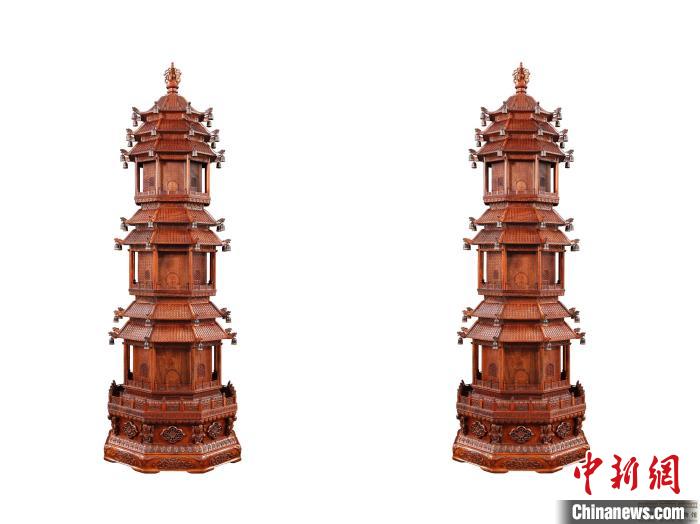 此次國家博物館收藏的5套家具中,2套仿清宮禦製的七重簷寶塔分別為(wei) 越南黃花梨和小葉紫檀材質,3套黃花梨微縮家具器型涵蓋案、櫃、坐具、臥具等品種,融技術與(yu) 藝術、實用與(yu) 觀賞為(wei) 一體(ti) 。