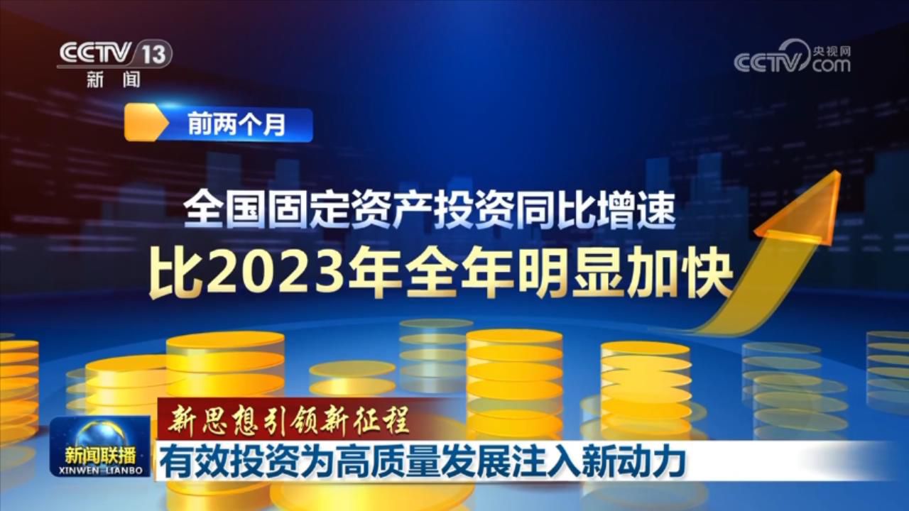 央視網消息(新聞聯播):習(xi) 近平總書(shu) 記強調,要完善擴大投資機製,拓展有效投資空間。今年開年以來,服務高質量發展成為(wei) 擴大有效投資的重要著力點,投資規模持續增長,投資結構質量持續提升,助力中國經濟實現平穩開局。