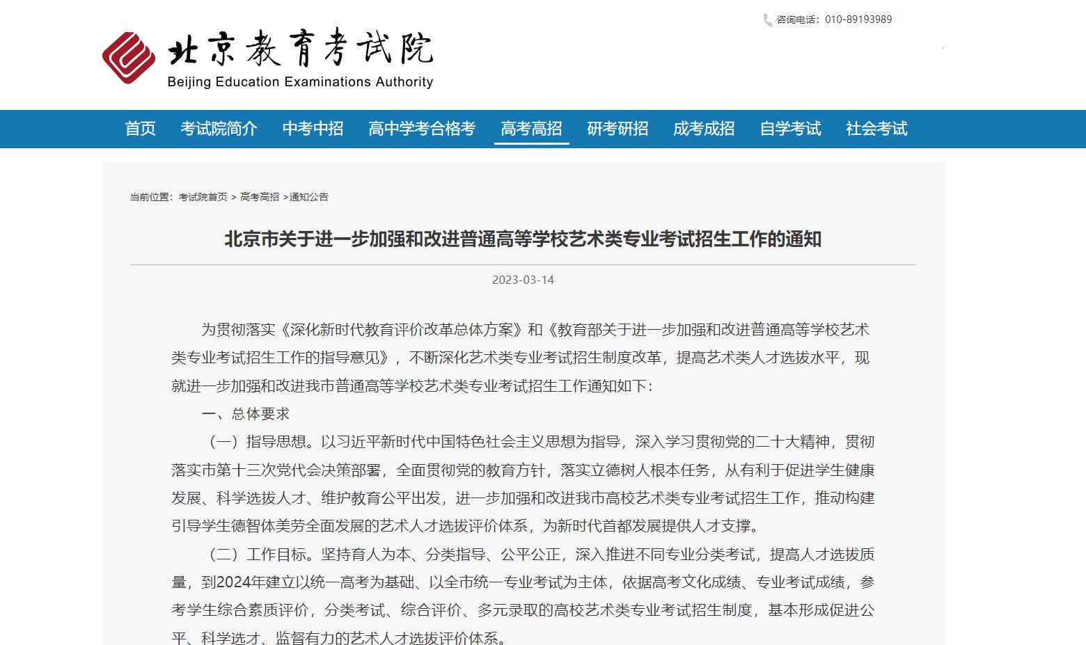 中新網北京3月15日電(記者 袁秀月)北京教育考試院14日發布通知,到2024年全麵實施音樂(le) 、舞蹈、表(導)演、播音與(yu) 主持、美術與(yu) 設計、書(shu) 法等6個(ge) 藝術類專(zhuan) 業(ye) 全市統一專(zhuan) 業(ye) 考試。