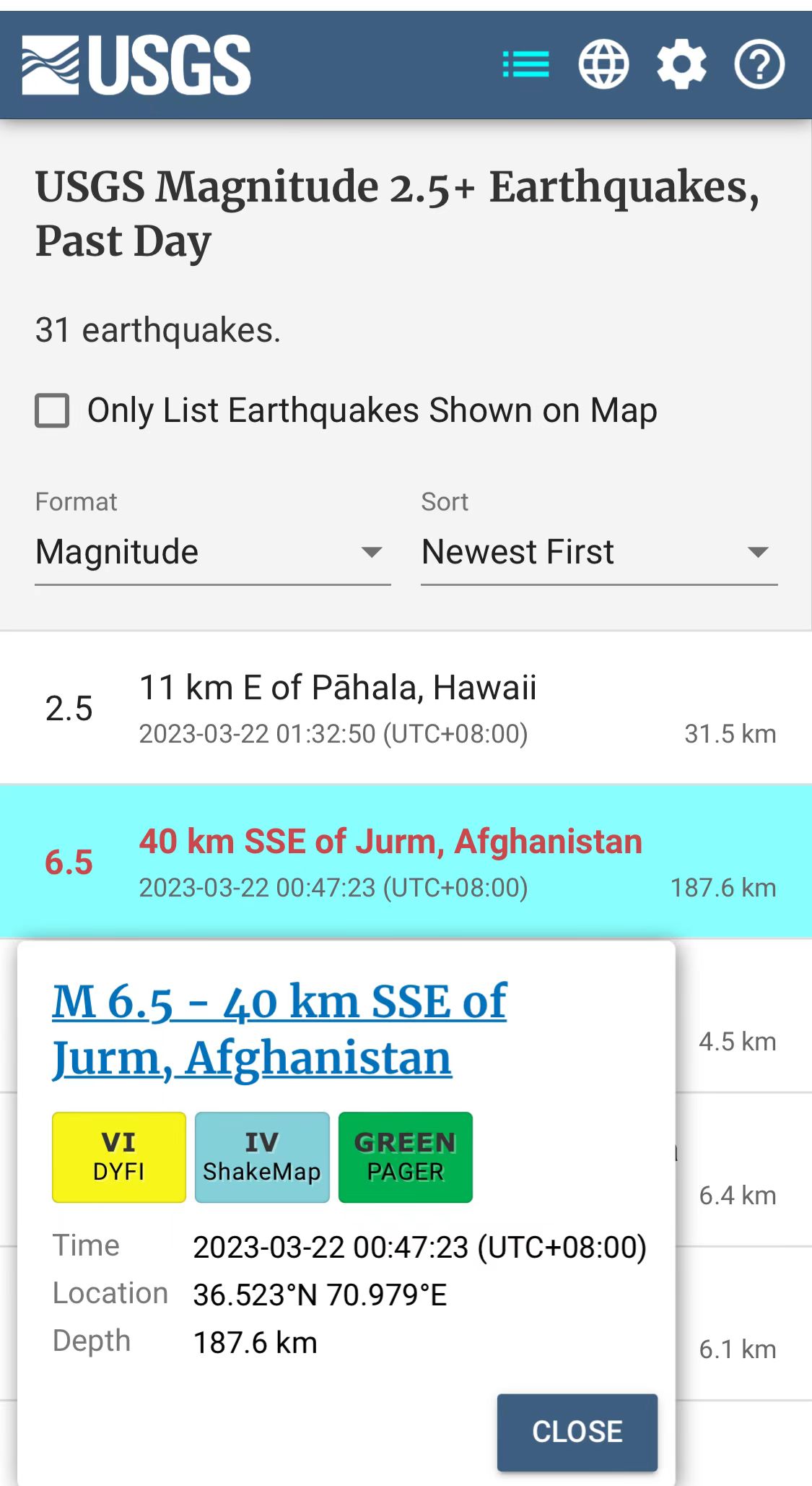 2023年1月,阿富汗曾發生裏氏6.0級地震,震源深度200千米。
