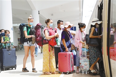 記者在琅勃拉邦、萬(wan) 象等地看到不少來自歐洲、亞(ya) 洲的遊客登上中老鐵路列車,前往老撾各地旅行。來自法國的尼諾帶著全家乘坐火車遊覽了琅勃拉邦、萬(wan) 榮、萬(wan) 象等地。他說:“乘坐火車在幾個(ge) 城市之間穿行的時間差不多都在1小時,方便又快捷,讓我擁有更多時間深入當地,感受風土人情。”