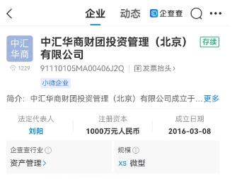 中新財經還以“華商財團”為(wei) 關(guan) 鍵詞通過企查查APP進行搜索,出現“中匯華商財團投資管理(北京)有限公司”、“中信華商財團國際投資集團有限公司”兩(liang) 項最為(wei) 相關(guan) 的結果。前者為(wei) 注冊(ce) 資本1000萬(wan) 元人民幣的小微企業(ye) ,後者則被標注“已告解散”。