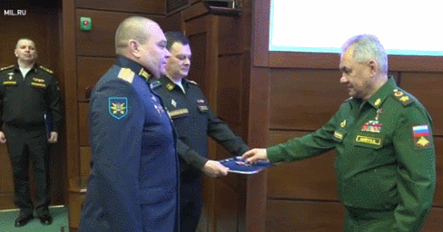 中新網3月23日電 據俄羅斯衛星網報道,俄羅斯國防部22日公布的視頻畫麵顯示,俄防長紹伊古向在黑海上空執行攔截美國無人機任務的飛行員授予“勇氣勳章”。