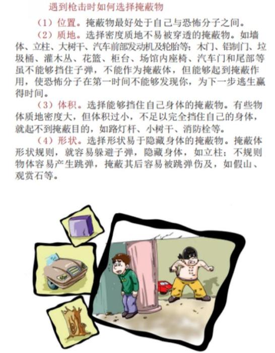 遇到槍擊時如何選擇掩蔽物 圖片來源:中國駐美國大使館微信公眾(zhong) 號