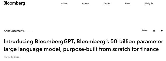 中新網3月31日電 3月30日,彭博發布公告稱,推出為(wei) 金融界打造的大型語言模型(LLM)——BloombergGPT。