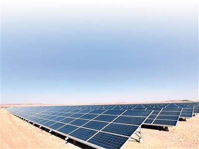 汽車在一望無際的撒哈拉沙漠中行駛,幾個(ge) 小時後,記者來到位於(yu) 阿爾及利亞(ya) 南部靠近馬裏的廷紮瓦滕光伏電站基地。這裏太陽能資源豐(feng) 富,剛入3月,白天的氣溫已高達40攝氏度。遠遠望去,一片片天藍色的光伏板嵌入浩瀚的黃沙之中,為(wei) 阿爾及利亞(ya) 人民送去源源不斷的綠色清潔能源。