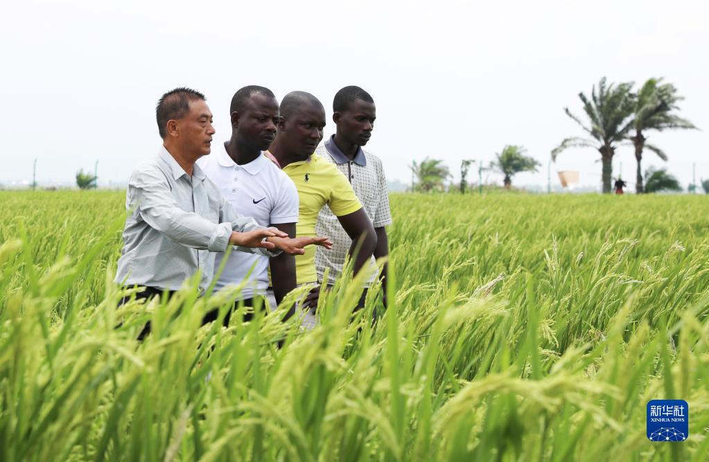 2022年10月29日,在布隆迪布班紮省基航加縣,中國水稻專(zhuan) 家但鬆柏(左一)指導當地農(nong) 民種植水稻。新華社記者 董江輝 攝