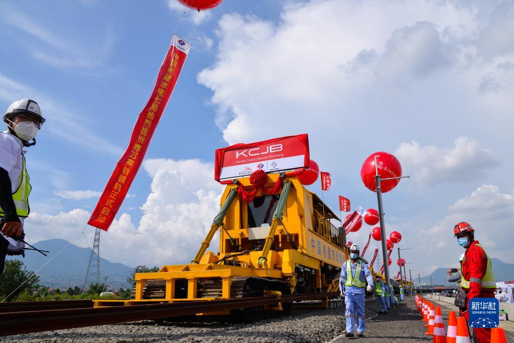 工作人員在印度尼西亞(ya) 萬(wan) 隆雅萬(wan) 高鐵鋪軌施工現場作業(ye) (2022年4月20日攝)。新華社記者 徐欽 攝