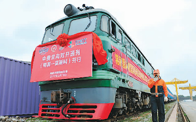 圖為(wei) 2022年江西首列中俄雙向對開班列(南昌—莫斯科)在南昌向塘國際陸港準備出發。