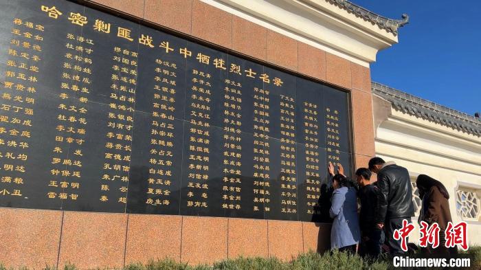 清明節前夕,在新疆哈密烈士陵園哈密剿匪戰鬥中犧牲烈士名錄牆前(以下簡稱“英名牆”),竇來強、竇剛強、竇瑞琴、竇調蕊、焦霞霞五位從(cong) 甘肅天水趕來的年輕人,撫摸著“英名牆”上其中一個(ge) 名字,放聲痛哭。