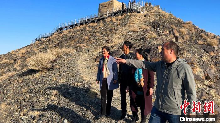 李世宗烈士孫子孫女一行在當年伊吾四十天保衛戰戰鬥發生地勝利峰。 王侯 攝