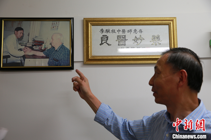 診所牆上一張彩色相片引起筆者好奇心。照片裏,李醫生在給一個(ge) 頭發花白的外國人號脈診斷。