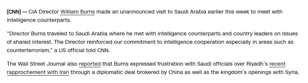 美國媒體(ti) 報道,美國中央情報局局長威廉·伯恩斯日前秘密飛往沙特。伯恩斯此行是對北京斡旋的反應動作。