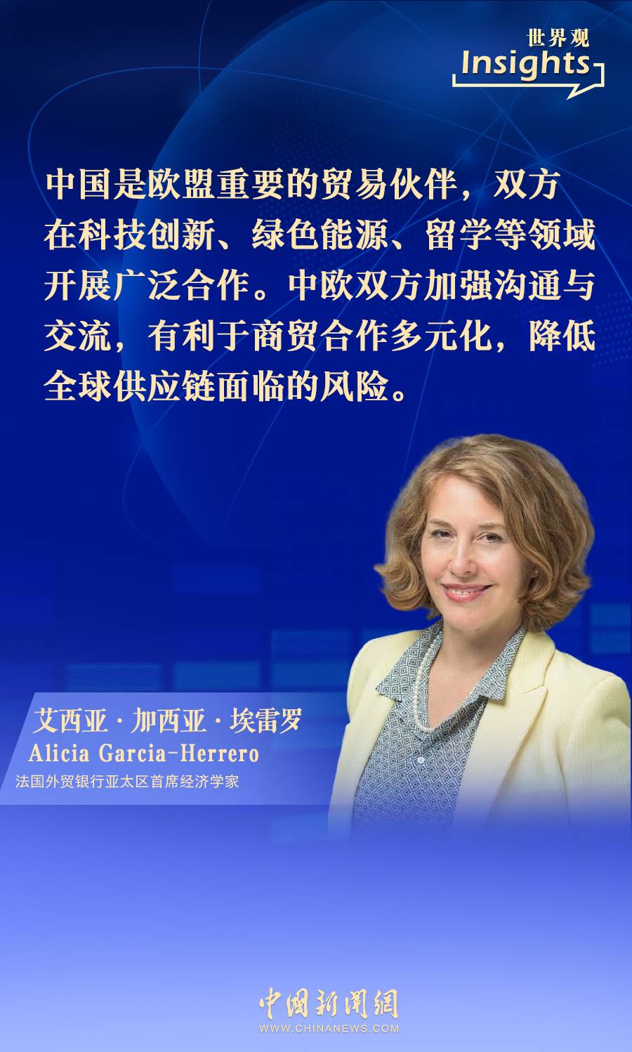 中新網4月8日電(陳彩霞)近日,歐洲首腦密集展開訪華之旅,法國外貿銀行亞(ya) 太區首席經濟學家艾西亞(ya) ·加西亞(ya) ·埃雷羅在接受中新網采訪時表示,歐中關(guan) 係發展至關(guan) 重要,歐洲無意與(yu) 中國“脫鉤斷鏈”。雙方在互惠互利的基礎上,在政治、經濟等領域加強合作,有利於(yu) 促進世界和平與(yu) 發展。