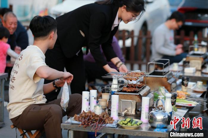 山東(dong) 淄博,食客正在享用燒烤。 中新社記者 梁犇 攝