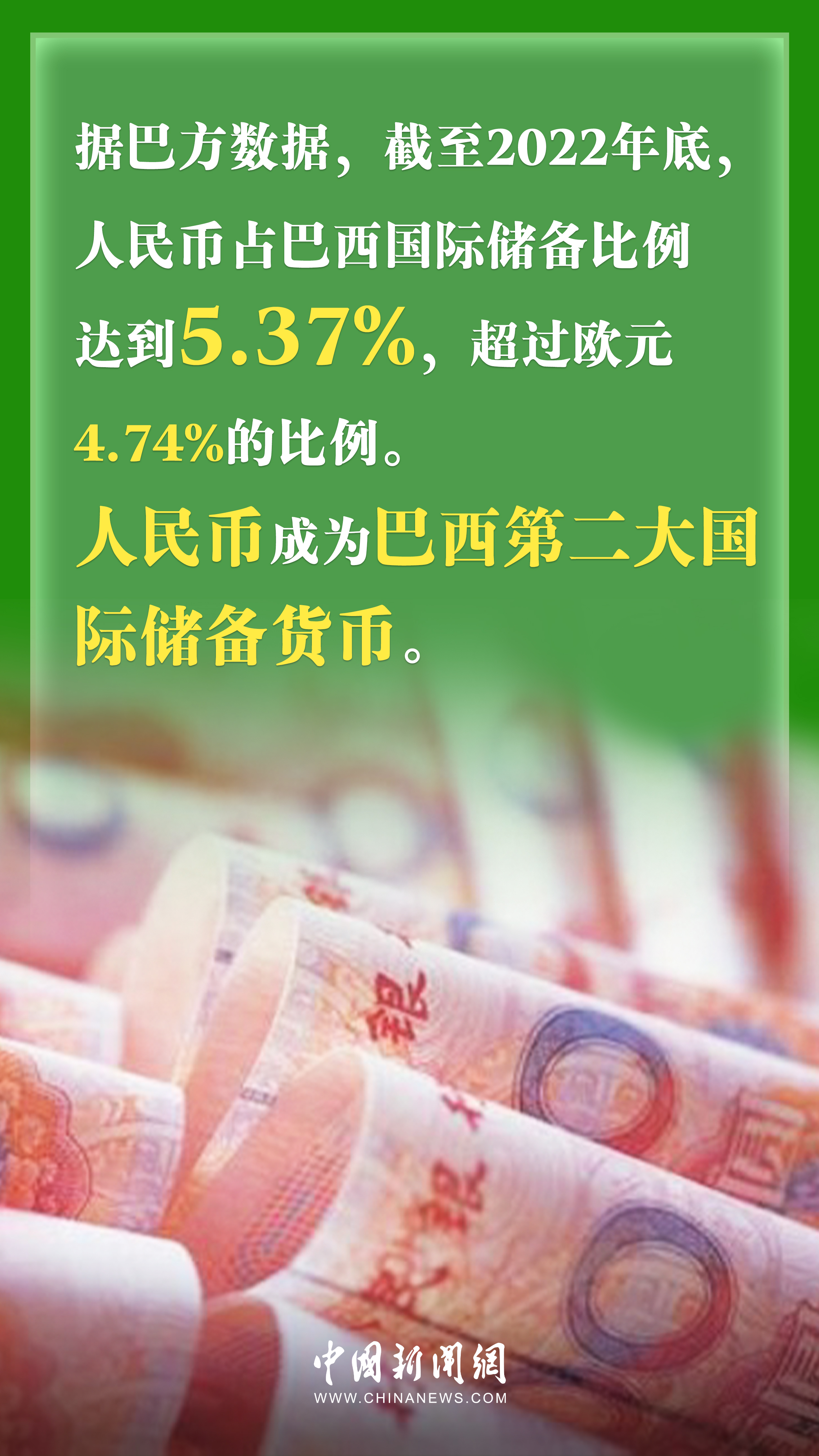 據中國官方媒體(ti) 報道,2022年中巴雙邊貿易額為(wei) 1714.9億(yi) 美元,中國連續14年成為(wei) 巴西最大貿易夥(huo) 伴。截至2022年年底,人民幣已經取代歐元成為(wei) 巴西外匯儲(chu) 備中第二重要的貨幣;中企投資建設運營的美麗(li) 山特高壓直流輸電二期項目,線路總長約2500公裏,令2200萬(wan) 巴西人受益,相當於(yu) 巴總人口的10%……