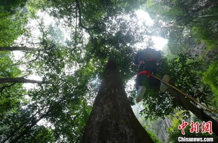科考人員攀樹測量。 廣西林業(ye) 局供圖
