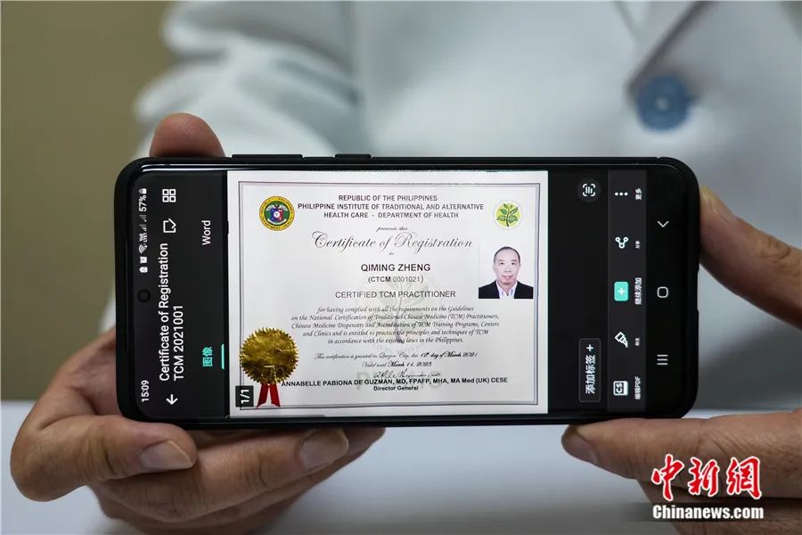 鄭啟明:2021年6月,菲律賓衛生部授予我該國首張中醫執業(ye) 資格注冊(ce) 證書(shu) ,這標誌著中醫在菲律賓獲得合法執業(ye) 資格,意味著中醫在菲未來的發展迎來新的契機。