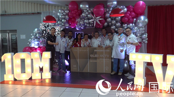 中巴員工利用午飯空閑時間一起紀念第1000萬(wan) 台電視機下線。人民網記者吳傑 攝
