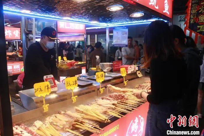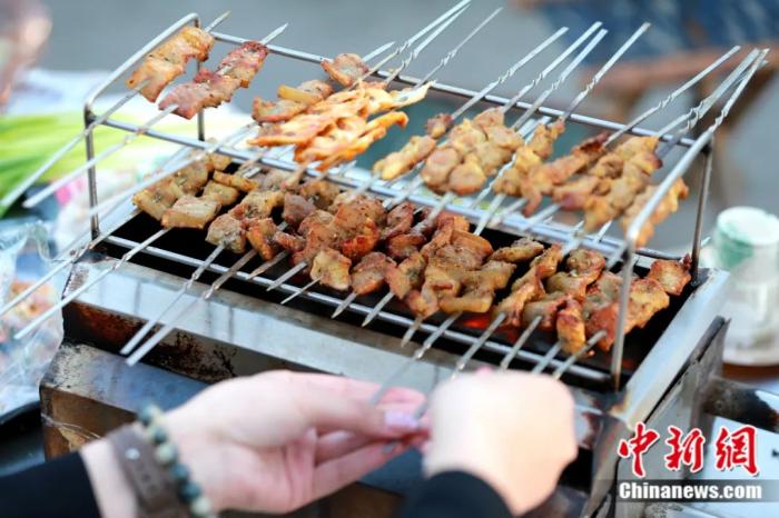 圖為(wei) 遊客正在購買(mai) 燒烤。林馨 攝