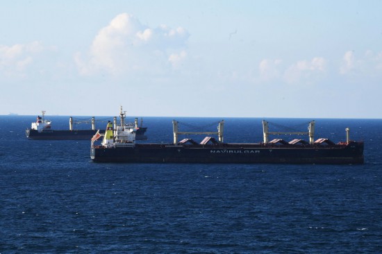 2022年8月6日,從(cong) 烏(wu) 克蘭(lan) 出發的第二批運糧船抵達土耳其伊斯坦布爾的博斯普魯斯海峽黑海入海口附近。(新華社記者沙達提攝)