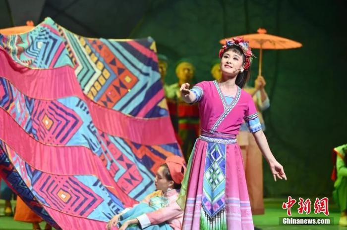 現代彩調劇《新劉三姐》在廣西民族劇院上演。俞靖 攝