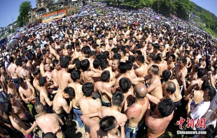 三江侗族自治縣富祿苗族鄉(xiang) “三月三”傳(chuan) 統花炮節現場。滾億(yi) 忠 攝