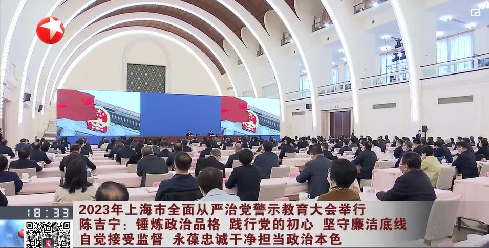 視頻截圖:2023年上海市全麵從(cong) 嚴(yan) 治黨(dang) 警示教育大會(hui)