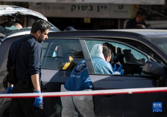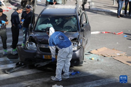 4月24日,警察在耶路撒冷駕車襲擊事件現場工作。新華社發(穆阿馬爾·阿瓦德 攝)