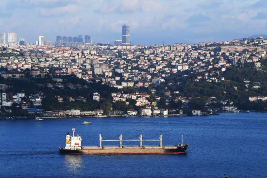 2022年8月7日,一艘從(cong) 烏(wu) 克蘭(lan) 出發的運糧船駛過土耳其伊斯坦布爾博斯普魯斯海峽。新華社記者沙達提攝