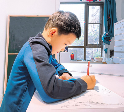 在美術老師幫助下,張正昊不斷修改完善草圖,最終繪製完成“保護地球大家園”海報,同時還設計了野生動物勳章和植物書(shu) 簽。