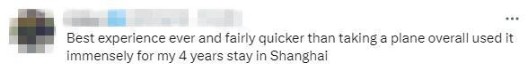 有網友介紹說,“最好的體(ti) 驗,比坐飛機要快得多,我在上海呆了4年,坐過很多次。”